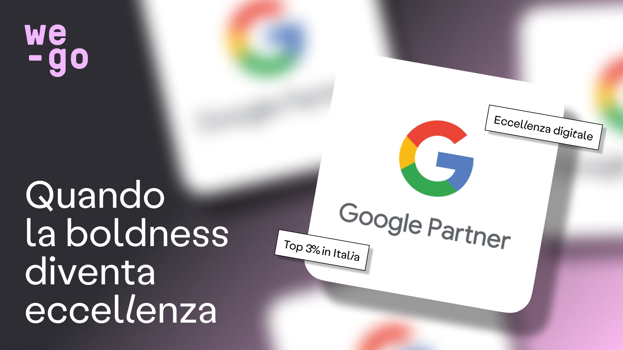 In un mercato digitale che non si ferma mai, dove le regole del gioco cambiano con un aggiornamento algoritmico o una nuova tendenza tecnologica, la differenza non la fa solo chi possiede gli strumenti, ma chi sa come governarli con visione e precisione. In we-go, abbiamo sempre vissuto il nostro lavoro con questa consapevolezza: non basta esserci, bisogna saper guardare oltre. Ed è proprio questa costante ricerca della performance e della qualità che oggi ci porta a un traguardo veramente bold: siamo ufficialmente Google Premier Partner.