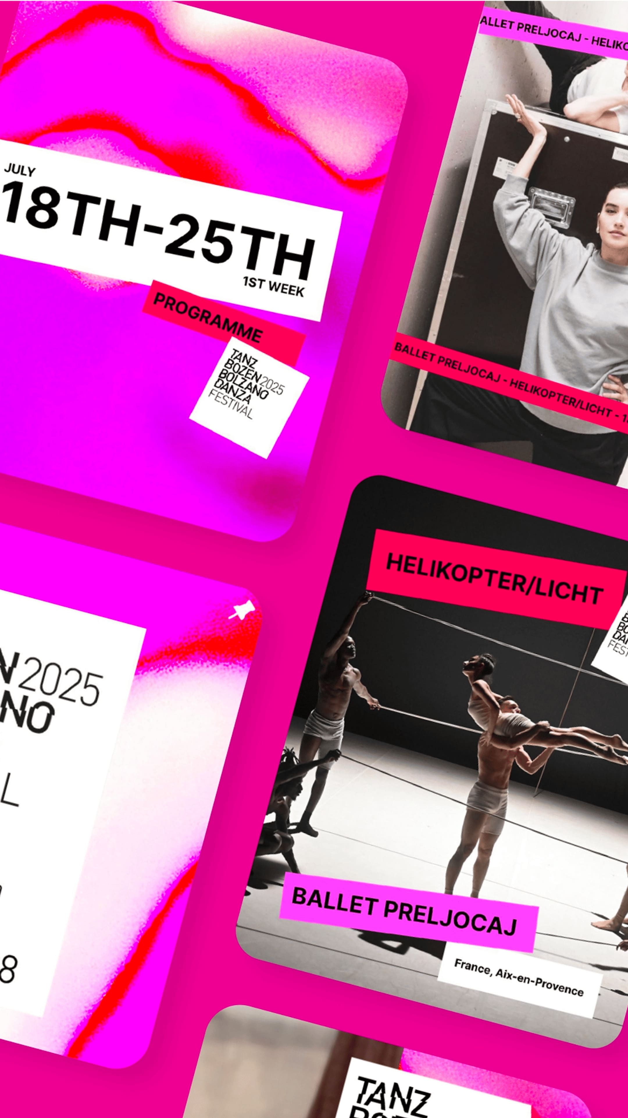 Be Bold. Be Together. Be Bolzano Danza. Con il nuovo concept e la nuova strategia, Bolzano Danza diventa un invito aperto: condividere, contaminarsi, vibrare insieme.