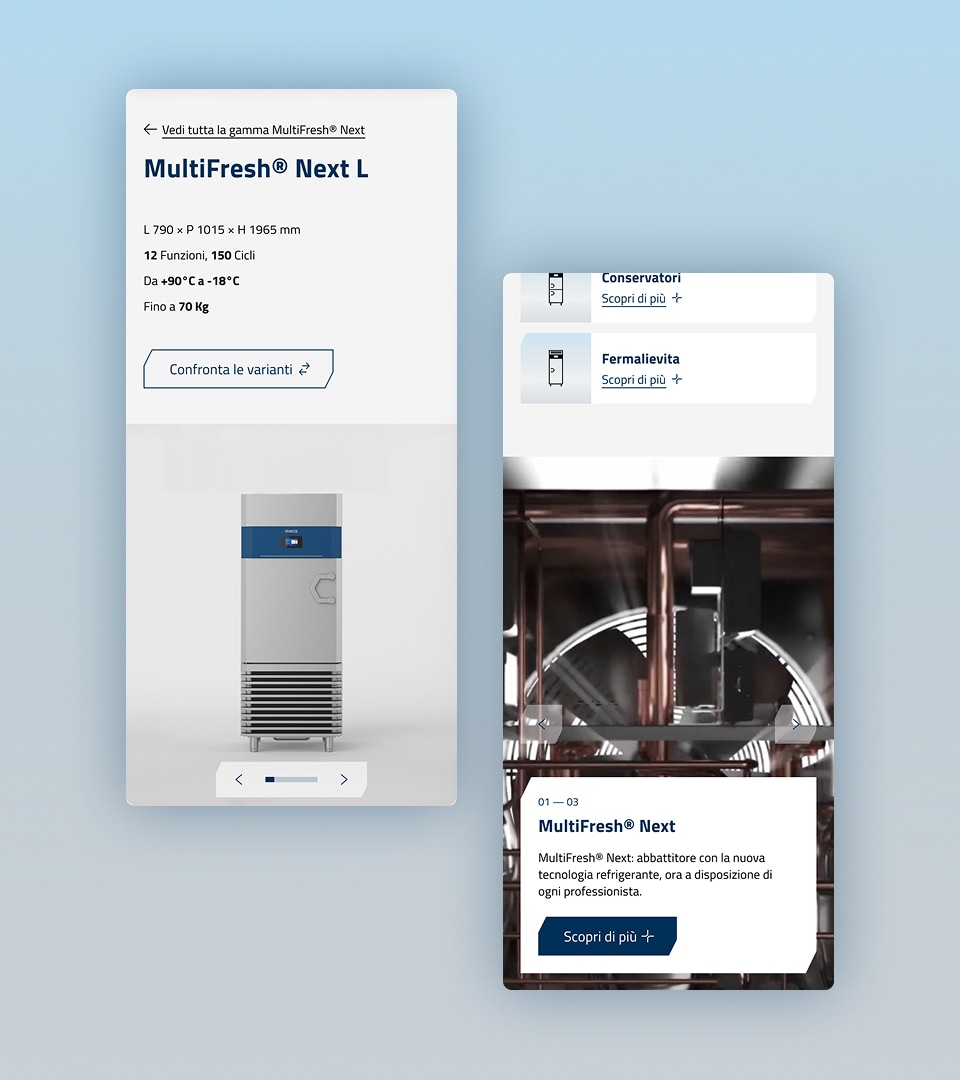 L’homepage diventa il primo snodo strategico: accesso rapido, gerarchie chiare, coinvolgimento immediato. I prodotti non sono più elenchi, ma percorsi: filtri intelligenti, chip informative, comparatori e strutture coerenti guidano l’utente nella scelta, senza mai sostituirsi alla consulenza umana. Il digitale diventa alleato, non barriera.