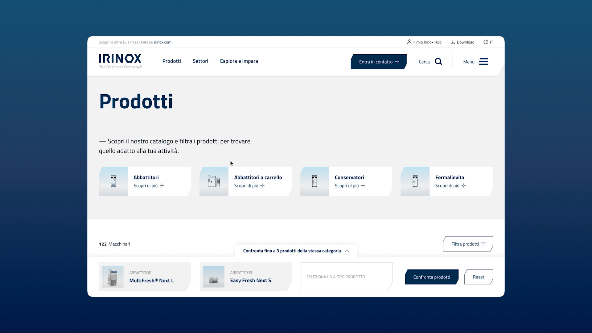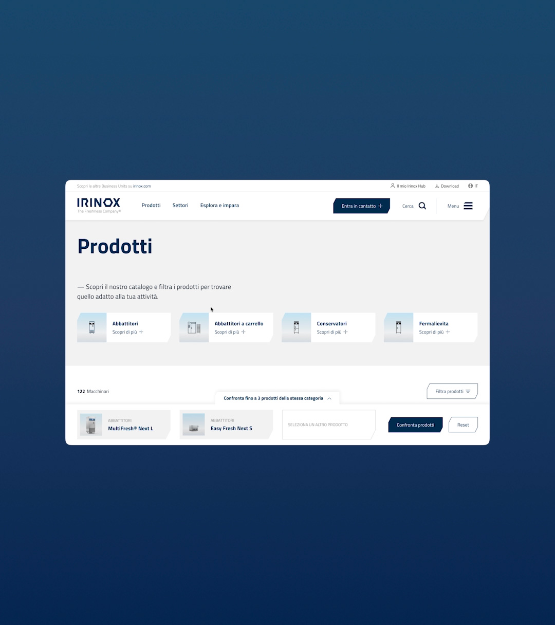 Irinox è tecnologia avanzata, soluzioni professionali, sistemi articolati. La sfida era trasformare questa complessità in un’esperienza intuitiva e orientata alla scoperta.